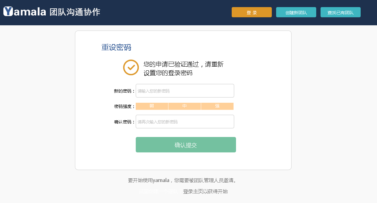 输入您的新密码,点击提交,网站会转入登陆界面。