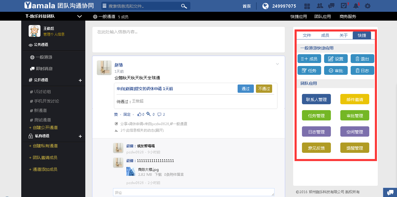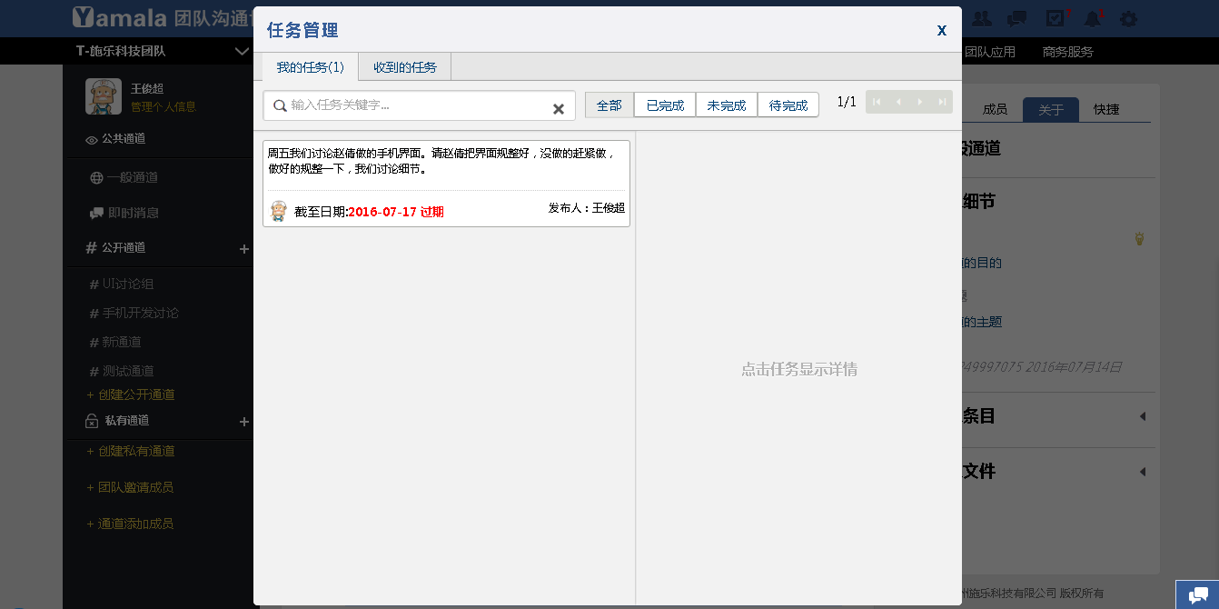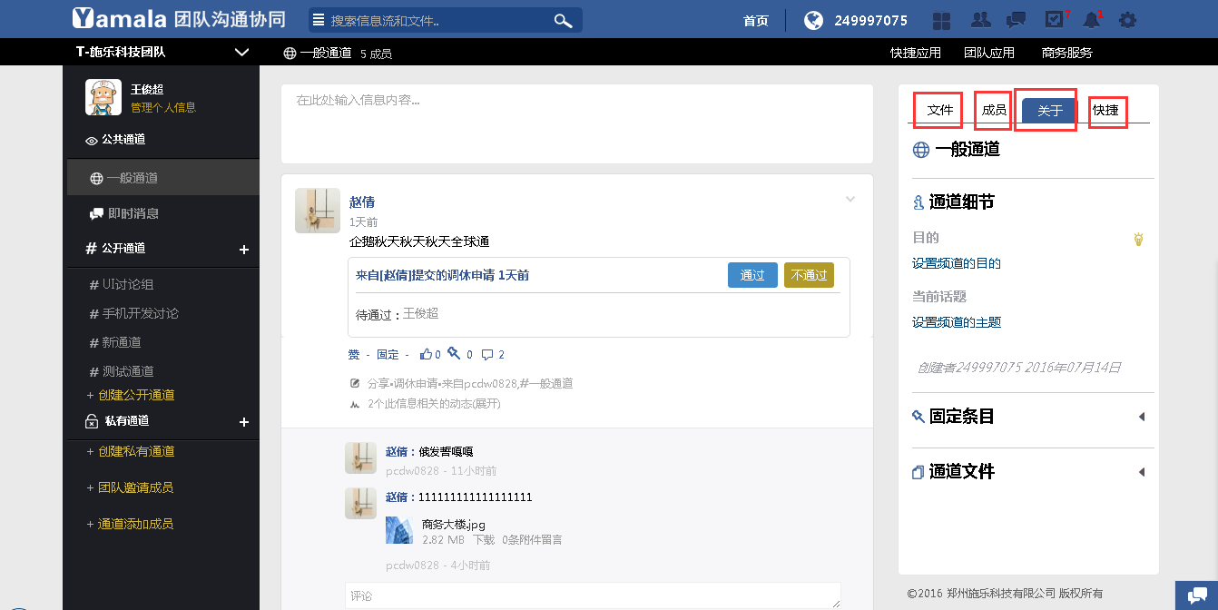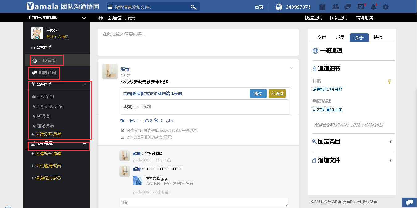 4:私有通道:私有通道是团队中某一些用户之间的私有沟通和信息分享,私有通道的信息及文件只有当前私有通道内的用户才能查阅。