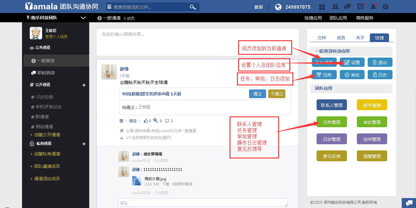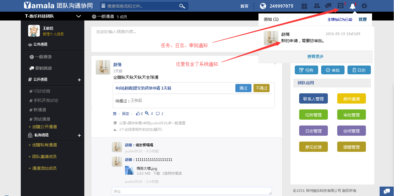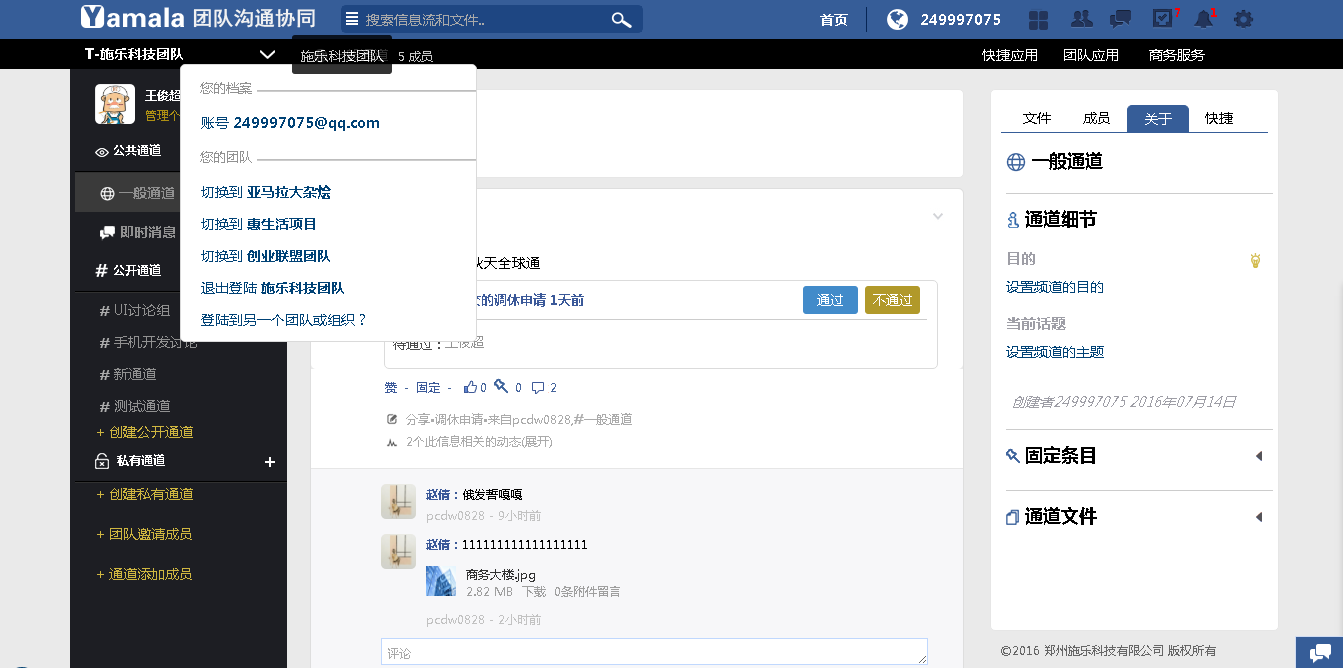 亚马拉团队协作服务支持用户创建多团队或加入其他用户创建的团队,简单快捷的团队切换、文件管理、日志管理、审批管理、任务管理、并重塑流程,简单易用;