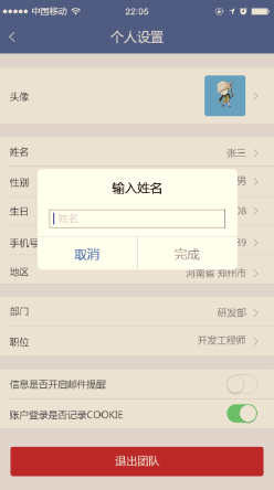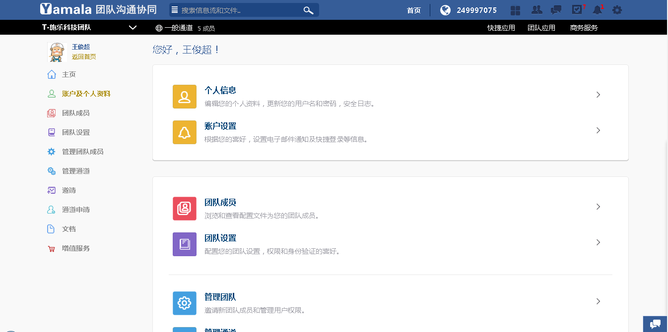 完善您的个人信息,密码及个人显示昵称。既可以进入团队主页。