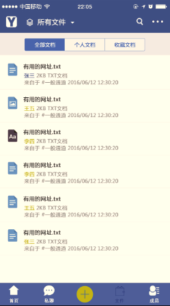 个人文件:包含了个人在团队中添加的文件、分享的文件;