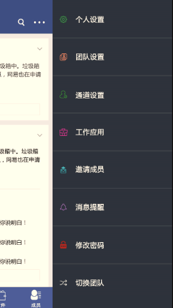 团队成员 :显示您的团队成员,团队拥有着或管理员可以更改成员信息等;